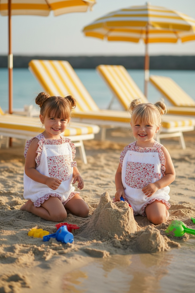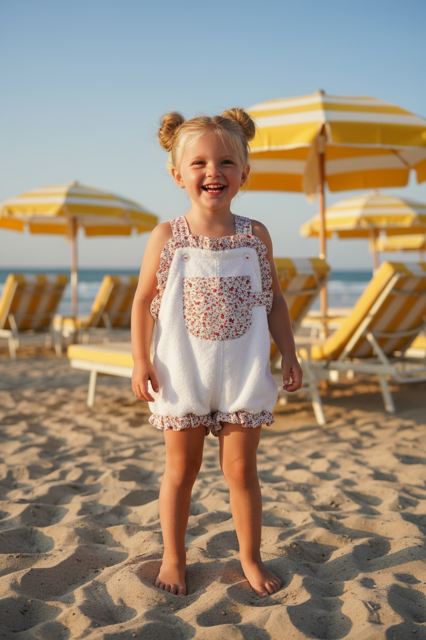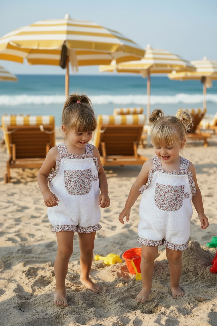 otra novedad para este verano 2026. peto toalla con volantes en las piernas, y volante en todo el frontal! queda ideal puesto y es el look perfecto para un día de playa, río, barco, piscina…