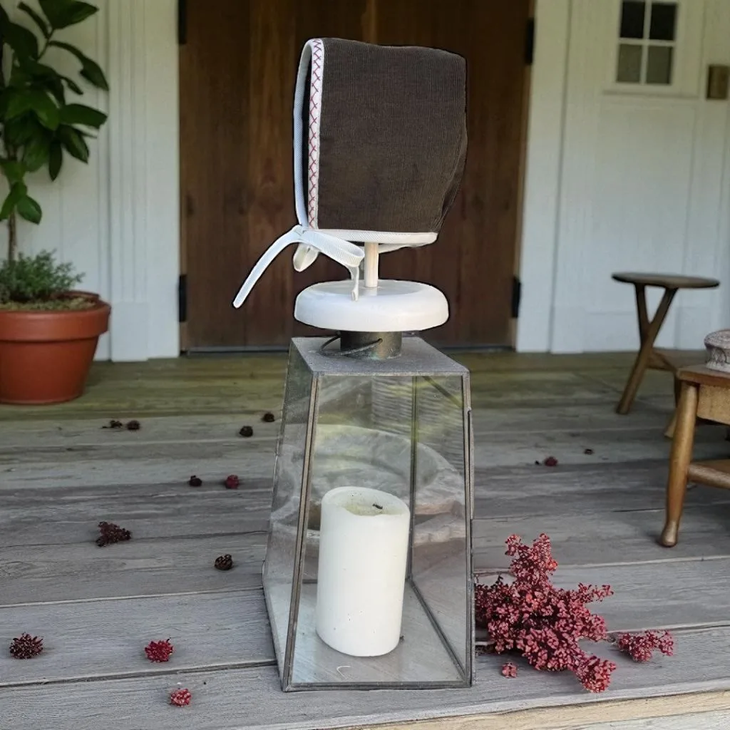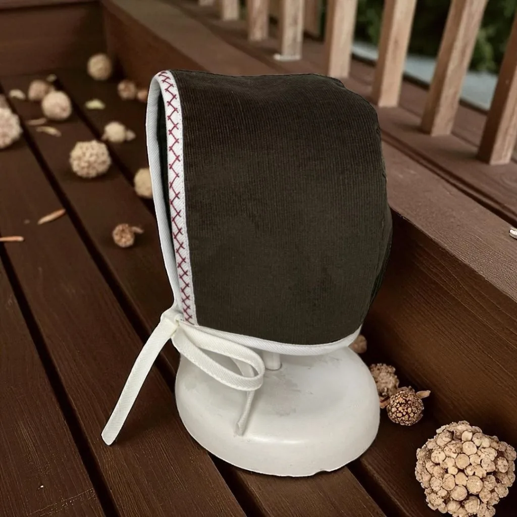 Podéis elegir entre micropana marrón chocolate y verde caza. lleva bordado a mano que rodea todo el frontal en color burdeos. lazada estrecha, aprox de 1 cm.