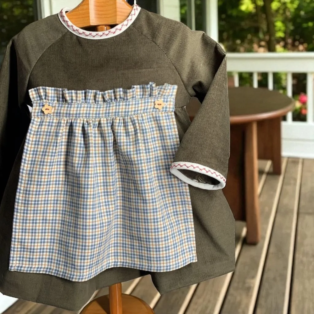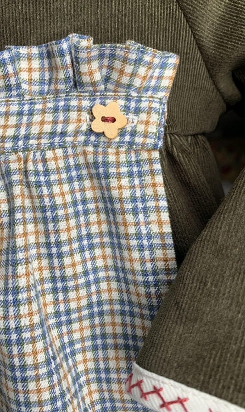 como véis, el mandil lleva volantito mini en la parte superior. en el caso de las fotos hane elegido un mandil extra de la tela n.35.