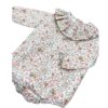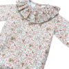 Pelele de manga larga fruncida en la muñeca, cuello volante y botonadura trasera.